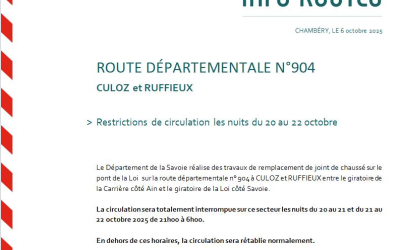 Circulation interrompue dans les nuits du 20 au 22 octobre entre Culoz et Ruffieux.