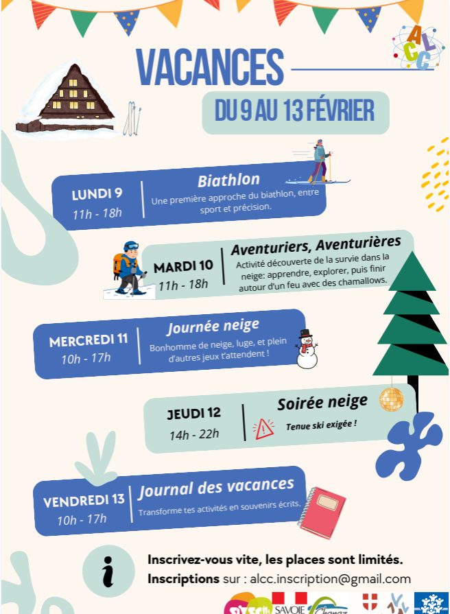 📄 Le programme détaillé est disponible auprès de l’accueil du centre social et culturel ALCC, sur Facebook, Instagram et intramuros.
