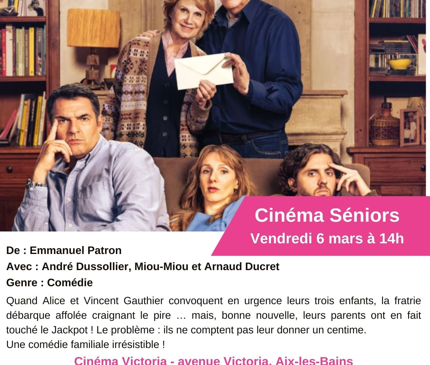 Vendredi 06 mars à 14h00 – cinéma Victoria à Aix Les Bains