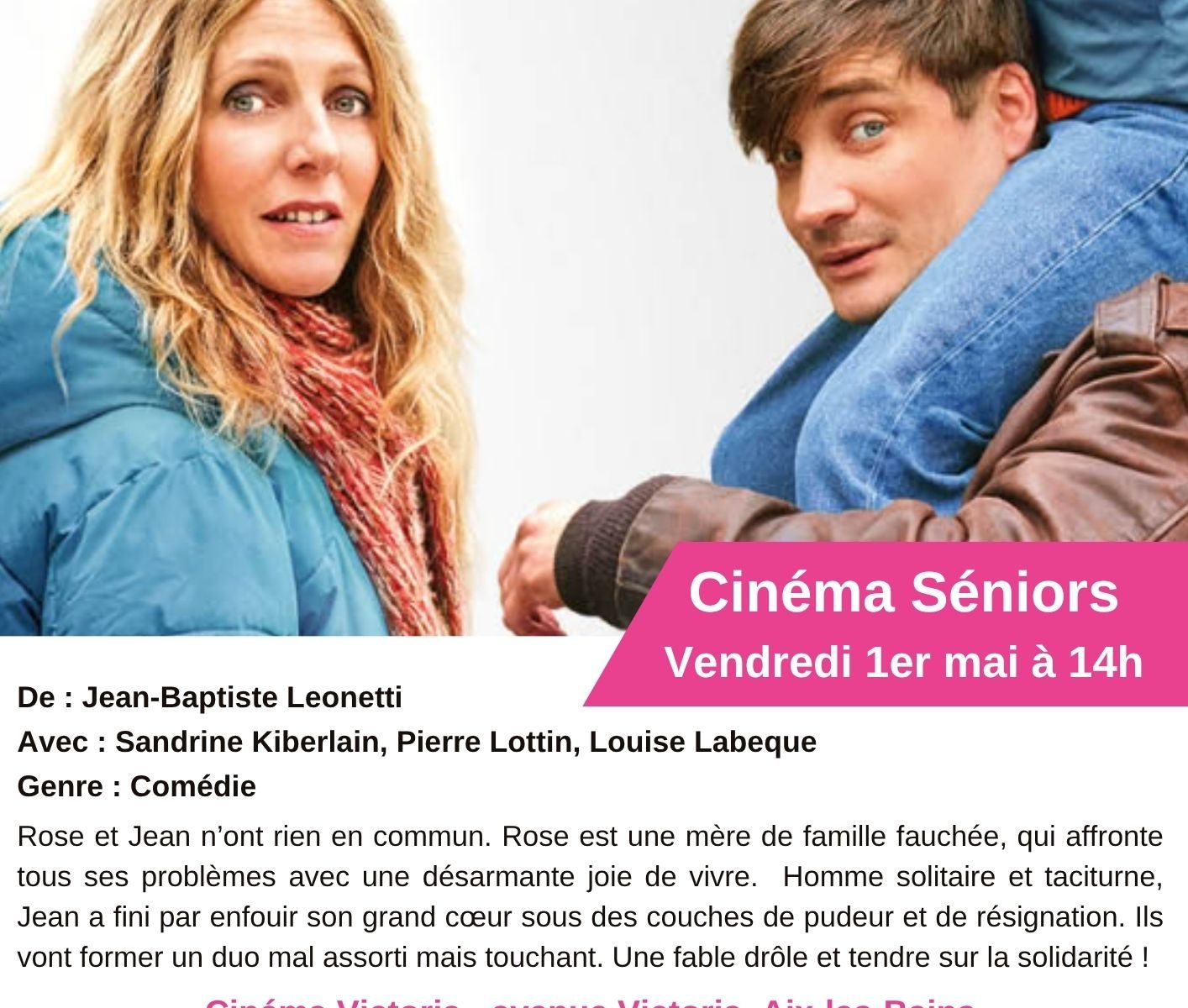 La prochaine séance de Ciné Séniors en partenariat avec le cinéma Victoria d’Aix-les-Bains aura lieu