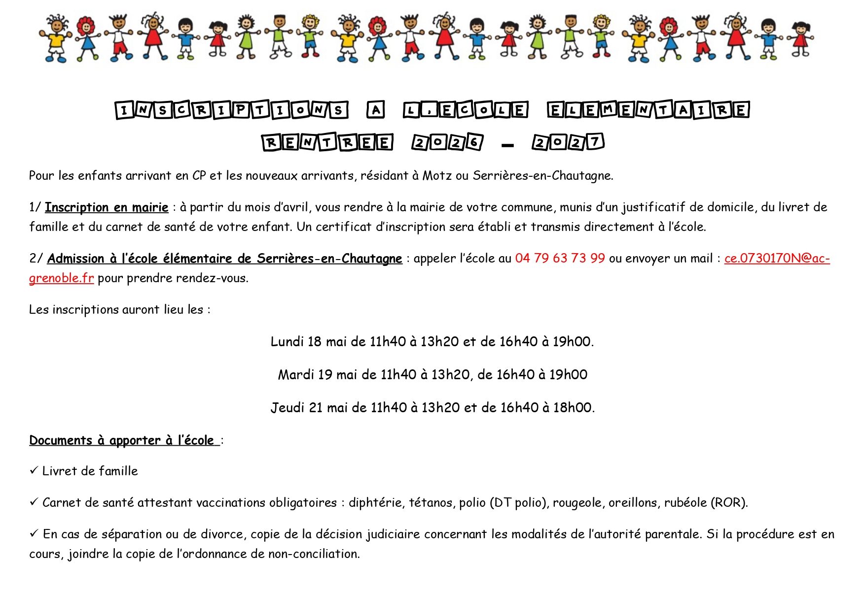INSCRIPTION ÉCOLE ÉLÉMENTAIRE