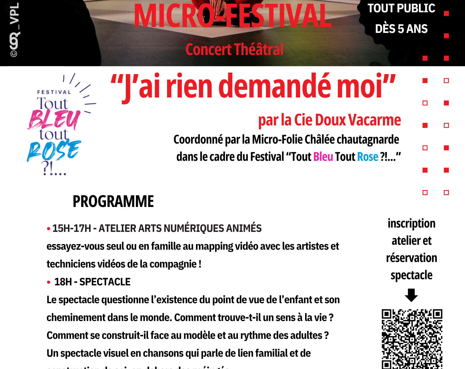 Dans le cadre du Festival Tout Bleu Tout Rose, la Micro-Folie organise un micro-festival le samedi 25 avril à la salle des fêtes de Saint-Pierre de Curtille (affiche en PJ)
