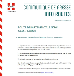 Circulation interrompue dans les nuits du 20 au 22 octobre entre Culoz et Ruffieux.