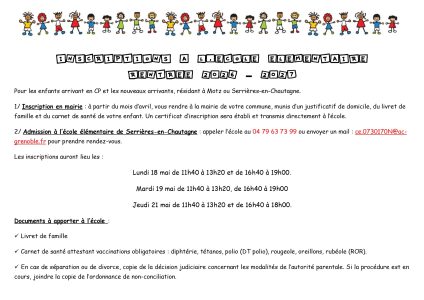 INSCRIPTION ÉCOLE ÉLÉMENTAIRE