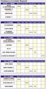 Programme cinéma de Seyssel du 25 février au 31 mars 2026